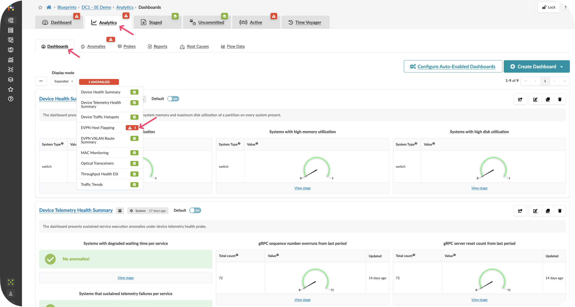 2. Click onbe the highlighted dashboard widgets showing anaomalies if present