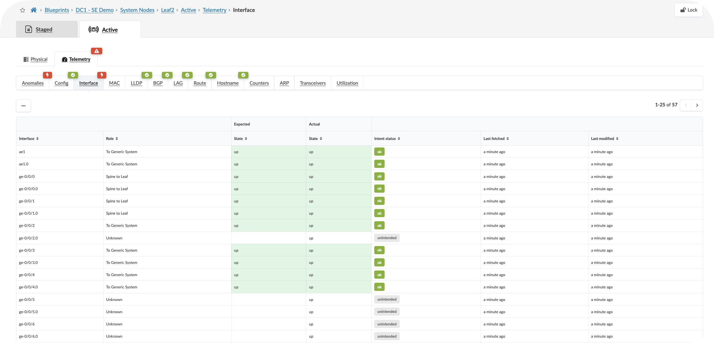 Value point: Apstra distinguishes between expected network behaviour and genuine issues. The system understands your design intent, so it only presents alerts for actual deviations rather than normal operational changes.